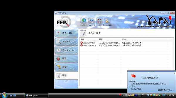 Windows 7 × FFRI プロアクティブ セキュリティ 1.0.206(2015年4月リリース)