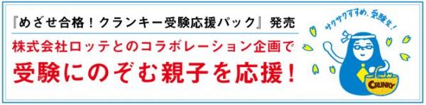 今回で4回目となる両社のコラボレーションにより発売する受験生応援商品「めざせ合格!クランキー受験応援パック」で、受験シーズンの親子のコミュニケーションをサポートします。また、縁起のよい紅白カラーのパッケージとYDK(やれば・できる・子)を応援するメッセージ入りの個包装を通じて、受験生を元気づける応援メッセージを発信します。