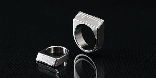 定規がモチーフのサージカルステンレス316L削り出しリング。