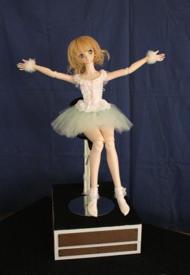 本年2月にスピーシーズ株式会社は、スリムでキュートなキャラクターを静かに且つ滑らかに動かす独自の技術(Motion Figure System) を応用した、”モーションフィギュア開発キット:MF301” を発表しました。人形部の各関節を特許取得済みの特殊なワイヤー駆動方式で駆動し、駆動力を発生するサーボモーターや制御用のCPUは下部に設けられた”からくりユニット”に収納しています。