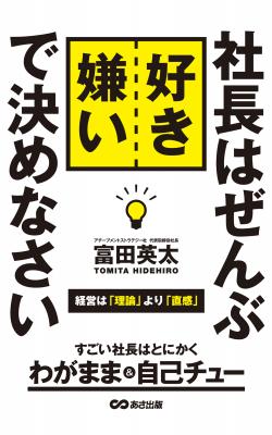 株式会社あさ出版(東京都豊島区池袋/代表取締役:佐藤和夫 http://www.asa21.com )は、利便性に優れたキンドル電子書籍で『社長はぜんぶ好き嫌いで決めなさい』著者富田英太、12月13日にリリース致しました。