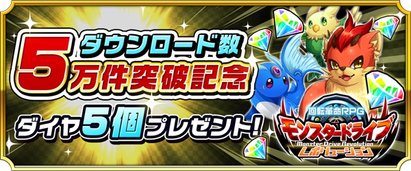 ダウンロード数5万件突破を記念し、チュートリアルを突破したプレイヤーの方全員に記念特典をプレゼントいたします。