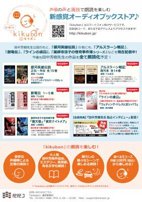 株式会社アールアールジェイ(所在地:東京都新宿区、代表取締役:橋満克文)は、有限会社らいとすたっふ(所在地:東京都中野区 代表取締役:安達裕章)より強力許諾を受け、朗読配信サイト(声優の声と演技で朗読を楽しむオーディオブックストアキクボン:http://kikubon.jp/)にて、
