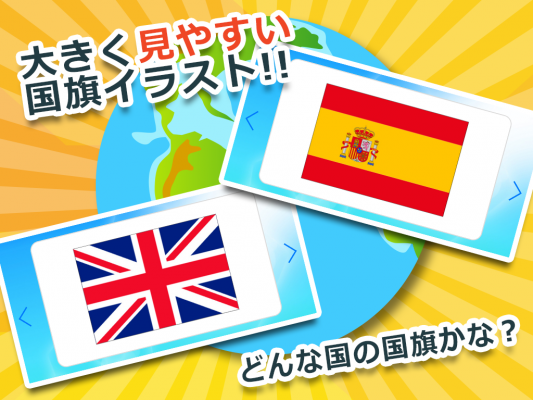 フラッシュカードのように、高速でカードのオモテ面をめくって行き、名前を当てさせることで子どもの右脳を鍛えることもできますし、国の首都や面積、通貨、また、国旗の色やデザインの成り立ちなど、子どもにはやや難易度の高い説明は、子ども達の探究心や好奇心をくすぐります。