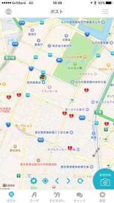 〇 ユーザーのコメント・写真を地図上に配信(自分を中心として、周囲にどのようなユーザーがどのようなコメント・写真を投稿しているのかが、一瞬で分かるようになりました。)