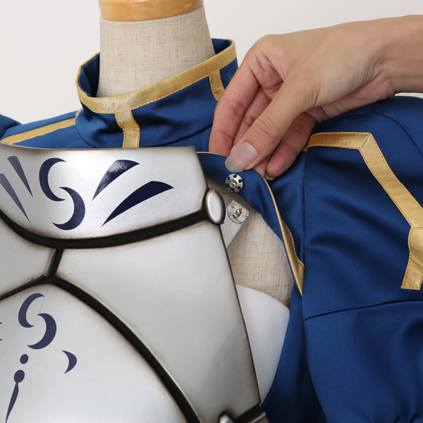 公式監修の元、特徴的なボリュームのある肩の部分や、袖のレース、金糸刺繍など細部まで丁寧に再現されたセイバーの青いドレスや、塗装で陰影を加え本物の甲冑のような質感にこだわり再現された本格立体造形の甲冑は、受注生産だからこそ可能なハイクオリティな仕上がりです。