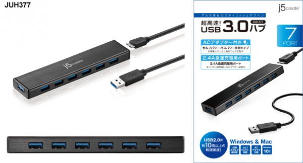 1.『バスパワー/セルフパワー両対応USB3.0対応 7portハブ JUH377』