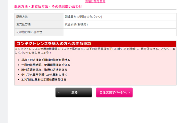 ・購入完了直前の注文内容確認ページ時に注意喚起の文章を設置