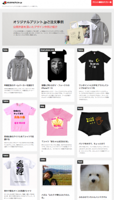 小ロットから大ロットまで、誰にでも簡単にオリジナルデザイングッズが作れる「オリジナルプリント.jp(http://originalprint.jp/ )」では、実際にオリジナルグッズをご購入の際にデザイン公開の許諾を頂いたお客さまのデザイン作例を紹介する特設ページをリリース致しました。