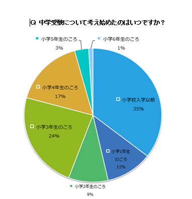 中学受験について考え始めた時期は、小学校入学以前という回答が全体の3割以上にのぼりました。
