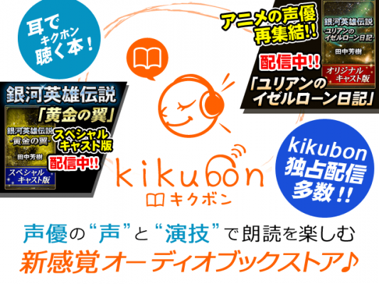 株式会社アールアールジェイ(所在地:東京都新宿区、代表取締役:橋満克文)は、有限会社らいとすたっふ(所在地:東京都中野区 代表取締役:安達裕章)より協力許諾を受け、朗読配信サイト(声優の声と演技で朗読を楽しむオーディオブックストアキクボン:http://kikubon.jp/)にて、田中芳樹原作「銀河英雄伝説 黄金の翼」スペシャルキャスト版を配信致します。