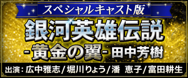 自由惑星同盟の“古き良き時代”を飾った英雄たちの活躍を描いた本作のナレーション担当はOVA版銀河英雄伝説にてナレーションを担当した屋良有作さん。その他キャストについてはhttp://kikubon.jp/ 内の特設ページからキャストのプランを募集しています。なお、本作のフルキャストでの音源化は初!となります。