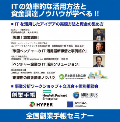 『創業手帳』を発行するビズシード株式会社は、日本ヒューレット・パッカード株式会社と合同主催で起業家向け無料セミナーを2016年1月26日に東京都中央区京橋にて開催します。