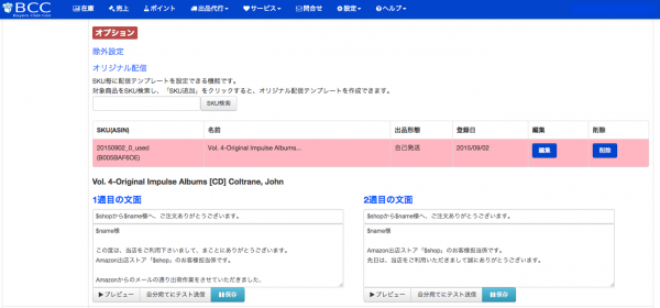 日本のAmazon以外にも、アメリカAmazonへも対応しており、配信するメールのテンプレートは国ごとにプリセットされるため、文面を最初から考える手間はありません。