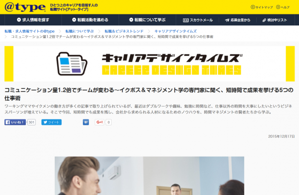 では、自分の理想の働き方を実現するにはどうすればいいのだろうか。ワークライフバランスを実現できている人と、できていない人の差とは一体何なのだろうか。(続きはWEBにて…http://type.jp/s/cdtimes/c_151217.html)