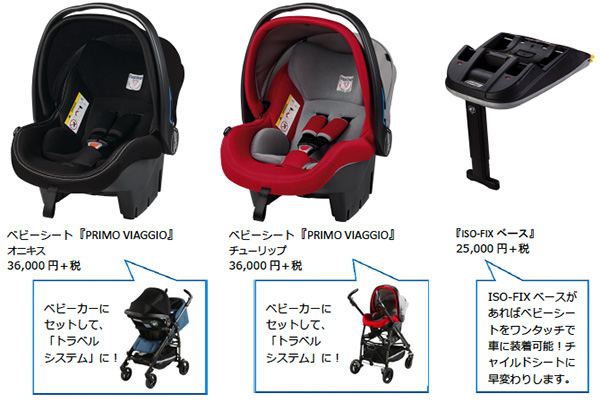 株式会社カトージ(本社・愛知県犬山市 代表取締役社長・加藤浩一)は、イタリア生まれのベビー用品ブランド「Peg-Perego」より、ベビーシート『PRIMO VIAGGIO』(プリモビアッジョ)と、ベビーシートをワンタッチで車に装着しチャイルドシートに出来る『ISO-FIXベース』(アイソフィックスベース)を1月中旬頃より新発売いたします。