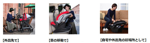 「トラベルシステム」は、乳児用チャイルドシートとベビーカーの組み合わせで、ベビーシートを用いることで、赤ちゃんを乗せたままベビーカー、車、室内へ移動出来るアイテムです。