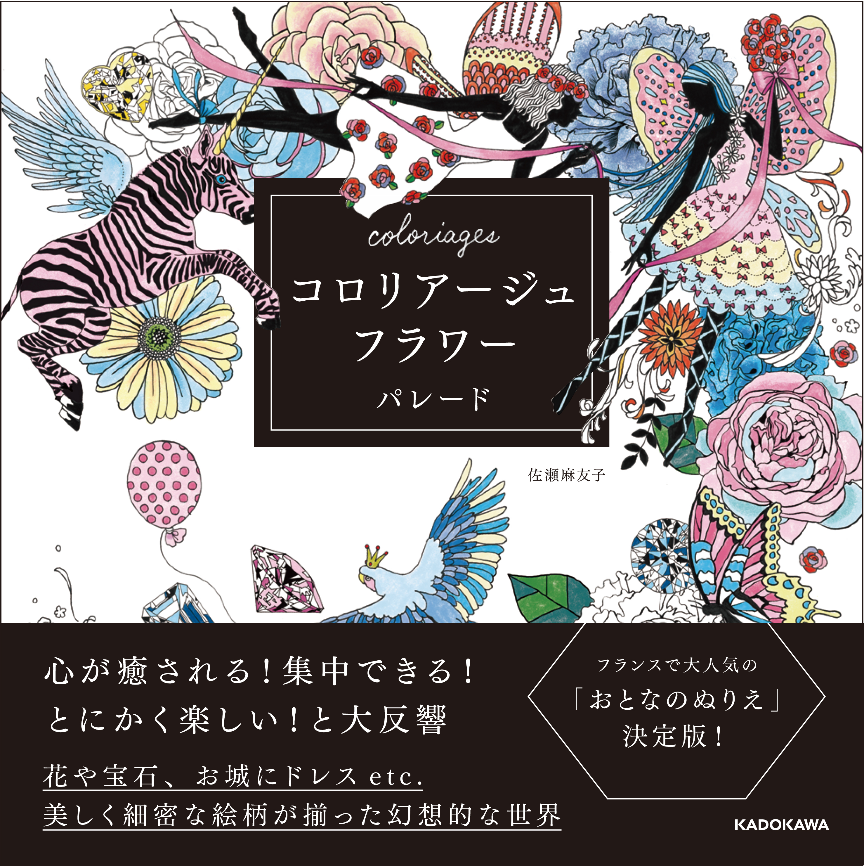 コロリアージュとは、世界中の女性たちを虜にしているフランス発の大人のぬりえ。細密な絵柄を、自由に塗って、自分だけの美しいページを仕上げていくことで、心が癒される、集中できる、とにかく楽しい!と大反響。フィギュアスケートの浅田真央選手もハマっていると発言するなど、日本国内でもブームが広がっています。
