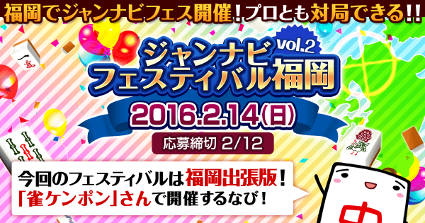 株式会社ウインライトが運営するオンライン麻雀アプリ「ジャンナビ麻雀オンライン」は、2月14日にリアルイベント「ジャンナビ フェスティバルvol.2」をプロ雀士の土田浩翔プロをゲストに迎え福岡で開催いたします。