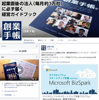 『創業手帳』のFacebookページファン数が2016年1月8日に3万人を突破しました(https://www.facebook.com/sogyotecho/)。