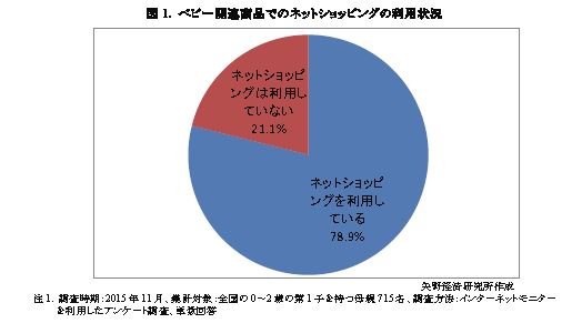 初めて子供を持った母親に対し、出産準備や育児用品の準備、子育ての状況を把握することを目的にアンケート調査を実施した。ここでは、ベビー関連商品の買い物に関する動向を取り上げて分析する。