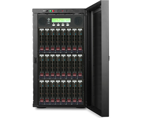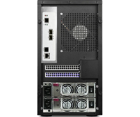 DS24-12SIa シリーズは、24 台の 2.5 インチ・ホットスワップ対応リムーバブルベイと、1.2GHz のデュアルコア RAID-on-Chip(ROC)プロセッサーにより、RAID レベル 0, 1, 10(1E), 3, 5, 6, 30, 50, 60, シングルディスク/JBOD をサポートし、PCI-Express3.0 内部バス、オンボード 2GB(最大 8GB)DDR3-1866 ECC SDRAM、iSCSI オフ ロード・エンジンを装備したハードウェア RAID コントローラを、堅牢なメタル製ミドル タワーケースに組み込んだデュアル 10GbE iSCSI 接続ストレージ・システムです。