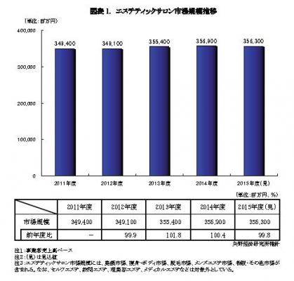 ◆2015年度のエステティックサロン市場は、前年度比99.8%の3,563億円の見込