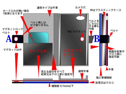 (注)総蛇革や総クロコ使用の場合、図にあるスマホプラケースの下は、