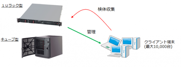「FFR yarai専用管理サーバ」は、FFR yarai 製品を統合管理するソフトウエアである「FFR Enterprise Management Console」を、スワットブレインズオリジナルのキューブ型および1Uラック型のサーバにプリインストールした専用アプライアンスタイプのサーバです。