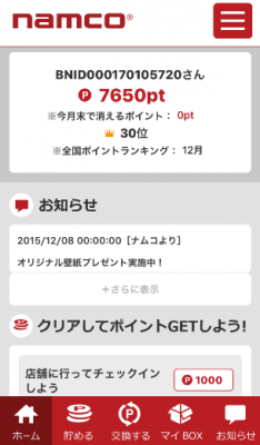株式会社ナムコは、スマートフォン向けアプリ「ナムコポイントアプリ」を2015年12月17日からのGoogle Play(Android端末向け)での提供開始に続き、2016年1月18日より、App Store(iOS端末向け)でも提供開始しましたのでお知らせします。