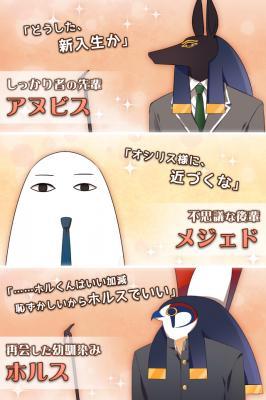 エジプト神と学園生活を共にし、繰り広げられる会話から自分で発言を選択し、ストーリーを進めていきます。