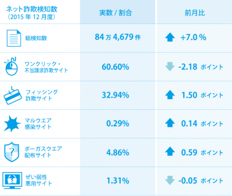BBソフトサービス(BBSS)の「Internet SagiWallTM(インターネットサギウォール)」で検知したデータを基にした、2015年12月度のインターネット詐欺リポートです。