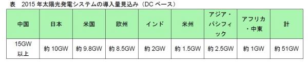 太陽光発電関連事業に関するコンサルティング業務を行う株式会社資源総合システム(本社:東京都中央区、代表取締役社長:一木修)は、世界の太陽光発電システムの2015年の導入量は51GW(DC*1)以上との分析結果(速報値)を発表しました。