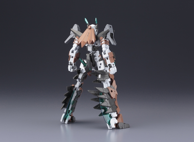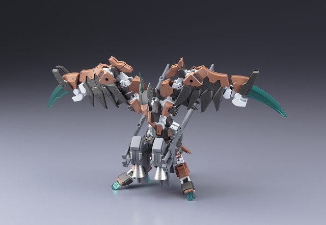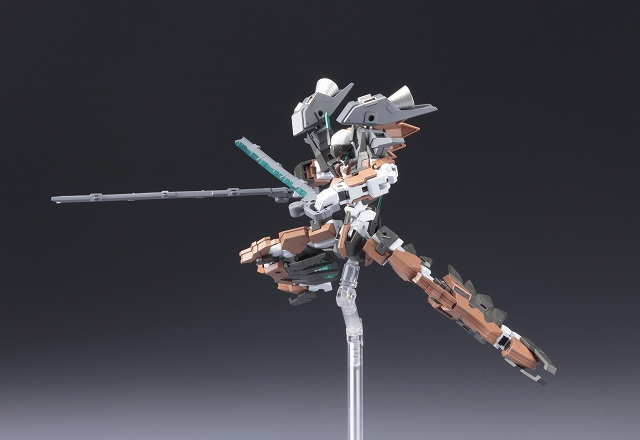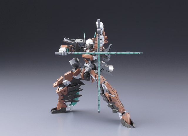 本体カラーを新規色に変更し、機体イメージを一新。各部の透明ユニットはクリアーパーツで再現、フレームの変形により鳥形巡航形態へ変形。専用設計された脚部股関節フレームにより、大胆なアクションポーズが可能となります。追加要素として、肩、腰部に3mm軸用の接続穴を設定できるアペンドパーツが付属。従来装備の「三節刀」に加え、斬撃武器「ベリルマチェット」×2が新たに付属。マチェット刃部分はクリアーパーツ製。オプションユニットとして「エクステンドブースター」×2が付属。各クリアーパーツは設定カラーで成型されたものに加え、無色透明で成型されたパーツが付属。塗装することでお好みのカラーリングにカスタマイズできます。素体となる「フレームアーキテクトTYPE001」は〈Ver. F.M.E〉に準じたPS素材製。ハンドパーツは各武器をしっかりと保持できる専用のものが付属。マルチカラーキット仕様で、組み立てるだけで臨場感あふれる仕上がりに仕上がります。