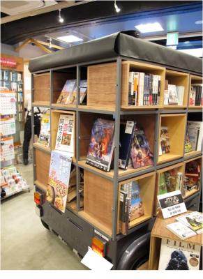 街の書店が減りつつある昨今、これからの書店はお客様を待つのではなく、こちらから会いに行くことが必要だという考えから、同店では三輪EVにボックス型の本棚を搭載し、“走る本棚”として導入しました。
