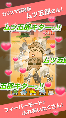 ゲームを有利にすすめるために、カリスマ飼育係のムツ五郎さんを呼ぶことができます。彼を呼ぶと、フィーバーモードとなり、動物たちがどんどん集まってきます。動物たちと一気にふれあうことができる絶好のチャンスです
