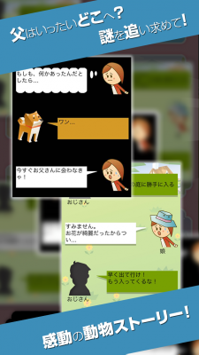 動物たちを仲間にしていくごとに見られるほんわか動物ストーリーも必見。物語はLINEのような形式で読み進めていきます。怪しい影絵やくるくると変わる主人公の表情にもご注目!ストーリーが進むにつれて深まる謎が最後にはちゃんと解決し、ほっこりできますので、最後までお楽しみください。前作の「集まれおっさん酒場」で遊ばれた方には納得の結末やサービス画像などが含まれていますので、お見逃しなく