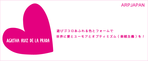 スペインの国民的デザイナーAgatha Ruiz de la Prada(アガタ・ルイス・デ・ラ・プラダ)によるデザイナーズブランド。ライセンシーは世界で50社を越え、様々なジャンルの商品がヨーロッパを中心に大人気を博しています。