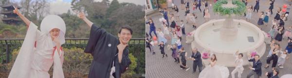 本作品は、「フラッシュモブ」や「ダンス」などゲストと"一緒に"楽しむ結婚式の余興演出が近年増えている背景を踏まえ、「WITH(ウィズ)婚」という新しいコンセプトのもと、実際の結婚式場で撮影いたしました。