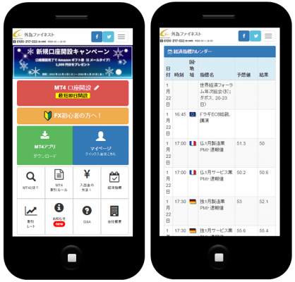 新しい公式スマートフォンサイトではFX取引に役立つ経済指標や取引レートがリアルタイムで確認できるほか、FX口座開設もスマホで完結することができます。