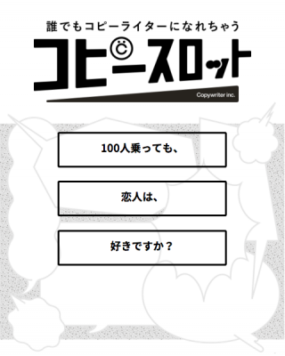 株式会社コピーライター(本社:東京都渋谷区、代表取締役CEO:長谷川哲士、以下「コピーライター」)は、2016年1月28日「コピーライターの日」に、誰でもコピーを3秒でつくれる #コピースロット をリリースしました。