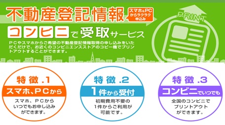 株式会社ナビット(本社:東京都千代田区、代表取締役:福井泰代)は、平成28年1月28日(木)より、パソコンやスマートホンから希望する不動産登記情報の取得を申し込むことで、コンビニエンスストア(※1)のマルチコピー機からネットワークプリントサービスを利用しプリント(※2)することができるサービスを提供致しました。