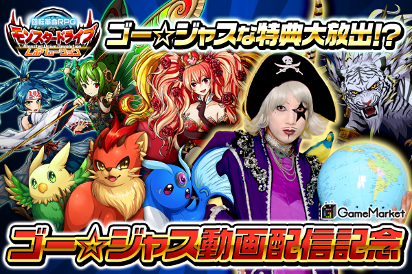 人気のゲーム動画チャンネル「ゴー☆ジャス動画@Game Market」にて、人気お笑い芸人宇宙海賊「ゴー☆ジャス」様とアシスタントのよきゅーんこと乾曜子様にモンドラの魅力を面白おかしく紹介していただきました。各回、配信記念特典もございます。何が貰えるかは動画を見てのお楽しみです。是非ゲームと共にお楽しみください。