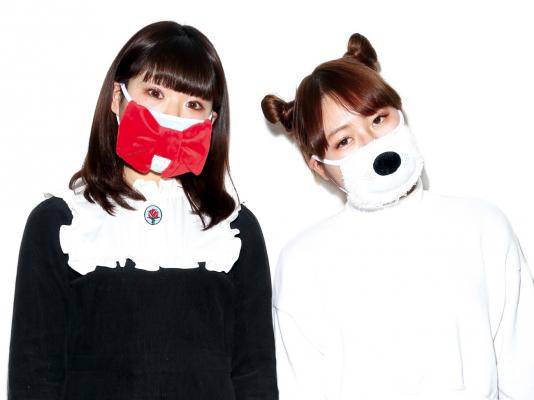 上画像:商品化が決定した学生制作のオリジナルマスク 左:堤美穂さんの作品「リボンマスク」、右:高久遥可さんの作品「くますく」