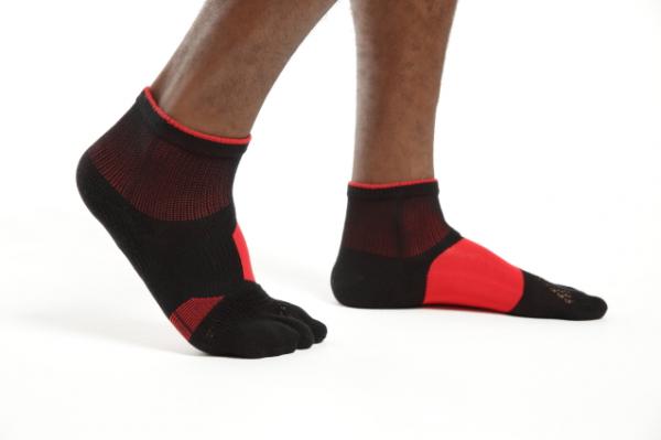 5本指ソックスの短所である着脱のしにくさを解消しつつ,5本指ソックスの長所であるグリップ力の高さを維持しました。
