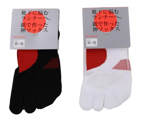 吸湿と発散に優れた「紙」素材に着目し開発した、シューズ内の蒸れを軽減するマラソンに特化したソックスです。
