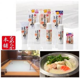 イベントでは、女性露天風呂にて、「豆乳風呂」がお楽しみ頂ける他、浴室とパウダールームで、「なめらか本舗」スキンケアシリーズをたっぷりとお使い頂けます。また、レストランでは、イソフラボンを取り入れられる美味しくてヘルシーな特別豆乳メニューをご用意いたします。更に、期間中、女性のお客様には、先着で「なめらか本舗」の商品をプレゼント。「浸かる!」「塗る!」「食べる!」ことで、“豆乳パワー” を体感して頂けます。