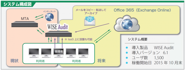 WISE Auditは、最初はオンプレのMTAにより配送経路上にアーカイブサーバを設置し、その後、メールサービスを利用によりアーカイブサーバを配送経路上に置かないように変更しても、大きな変更を伴わずにシステムを移行できるため、このことが大きな選定理由になりました。