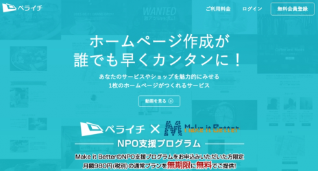 Webサービス開発運営を行う、株式会社ホットスタートアップ(所在地:東京都渋谷区、代表取締役:橋田一秀)は、同社が提供する誰でも・カンタンに・素早くサービスやショップを魅力的にみせる1枚のスマホ対応の紹介ページがつくれるサービス「ペライチ」の月額980円のプランを、非営利団体(特定非営利活動法人、公益財団法人・公益社団法人、社会福祉法人)に対して無償で提供する『NPO支援プログラム』を2016年1月12日に開始いたしました。その後、一般社団法人様から多数のお問い合わせをいただき検討した結果、2016年2月1日より同プログラムの対象に一般社団法人を追加致しました。なお、同プログラムで作成されたサイトをリンク先サイトとして活用できていたGoogleが1ヶ月あたり10,000ドル分のAdWords広告を助成するGoogle Ad Grants(https://www.google.co.jp/intl/ja/grants/)の対象団体として一般社団法人は含まれておりません。