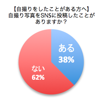 「自撮りをしたことがある」と回答した女性に対して「自撮り写真をSNSに投稿したことがありますか?」という質問をしたところ「ある」と回答した割合は38%にものぼりました。